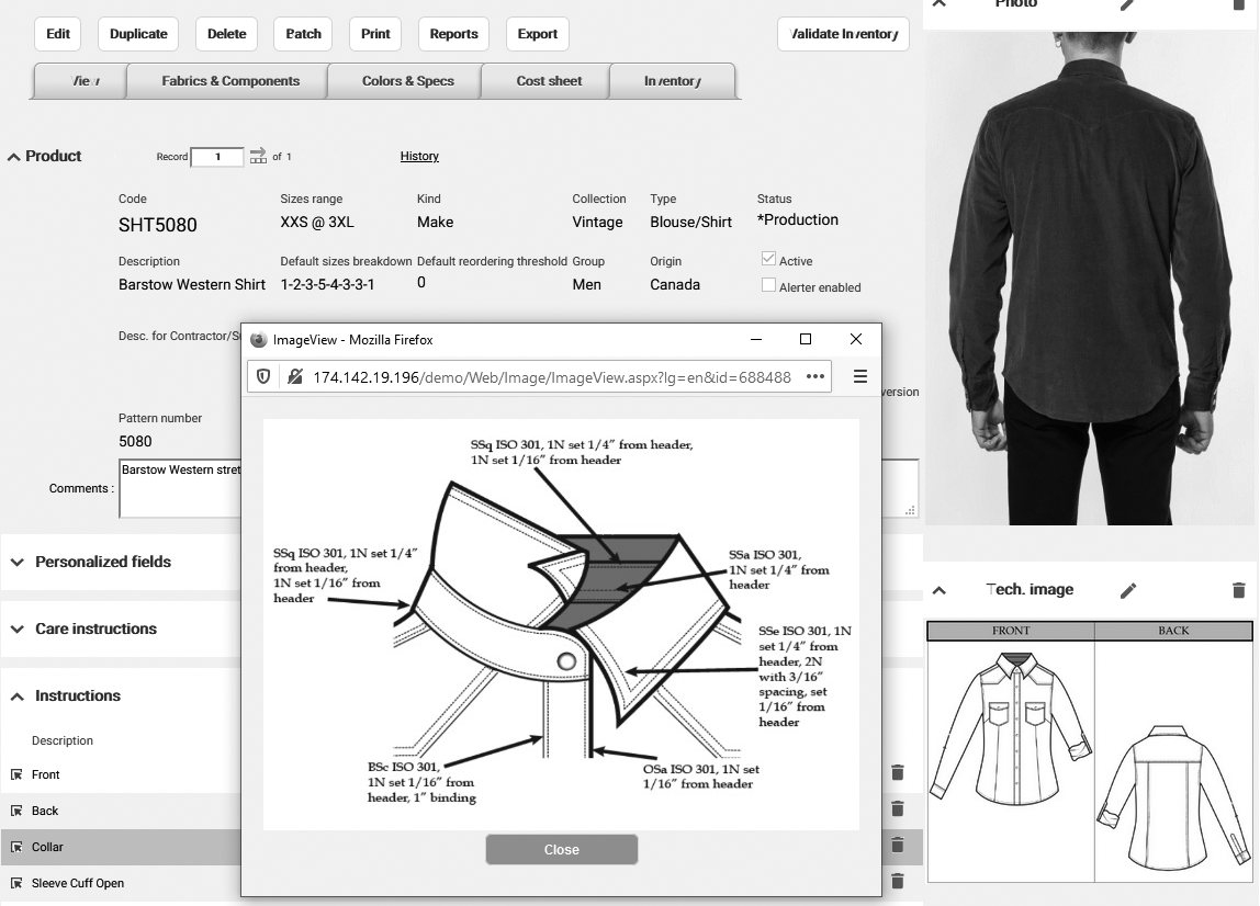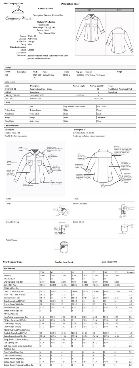 The Instruction panel allows the addition of text and images for all the details of making and labeling. The image can reach a full page for the details of measurements.measurement specifications